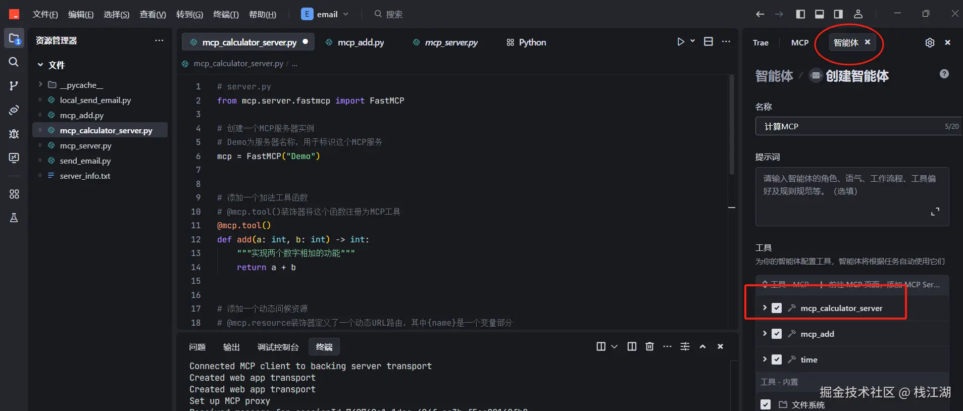 再创建一个智能体来引用刚才的 MCP 服务