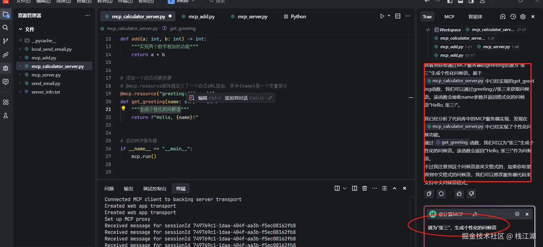 到这里就已经完成 MCP 的开发与调用了。