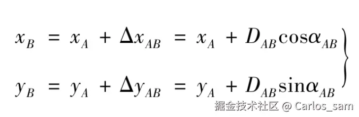 坐标正算是指根据已知点的坐标、已知边长及该边的坐标方位角,计算未知点的坐标。简单来说,就是已知起点坐标、两点间的距离和方位角,求终点坐标。