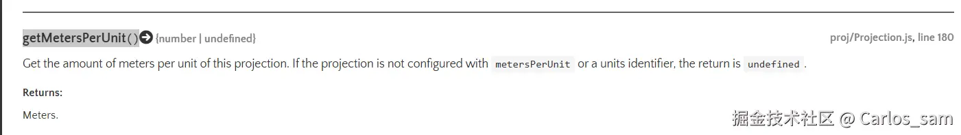可以通过projection.getMetersPerUnit()方法来获取当前坐标系下1个单位长度所对应的米数。