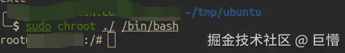 sudo chroot $ubuntu_dir /bin/bash,其中$ubuntu_dir是目录的位置,比如/home/test/tmp/ubuntu