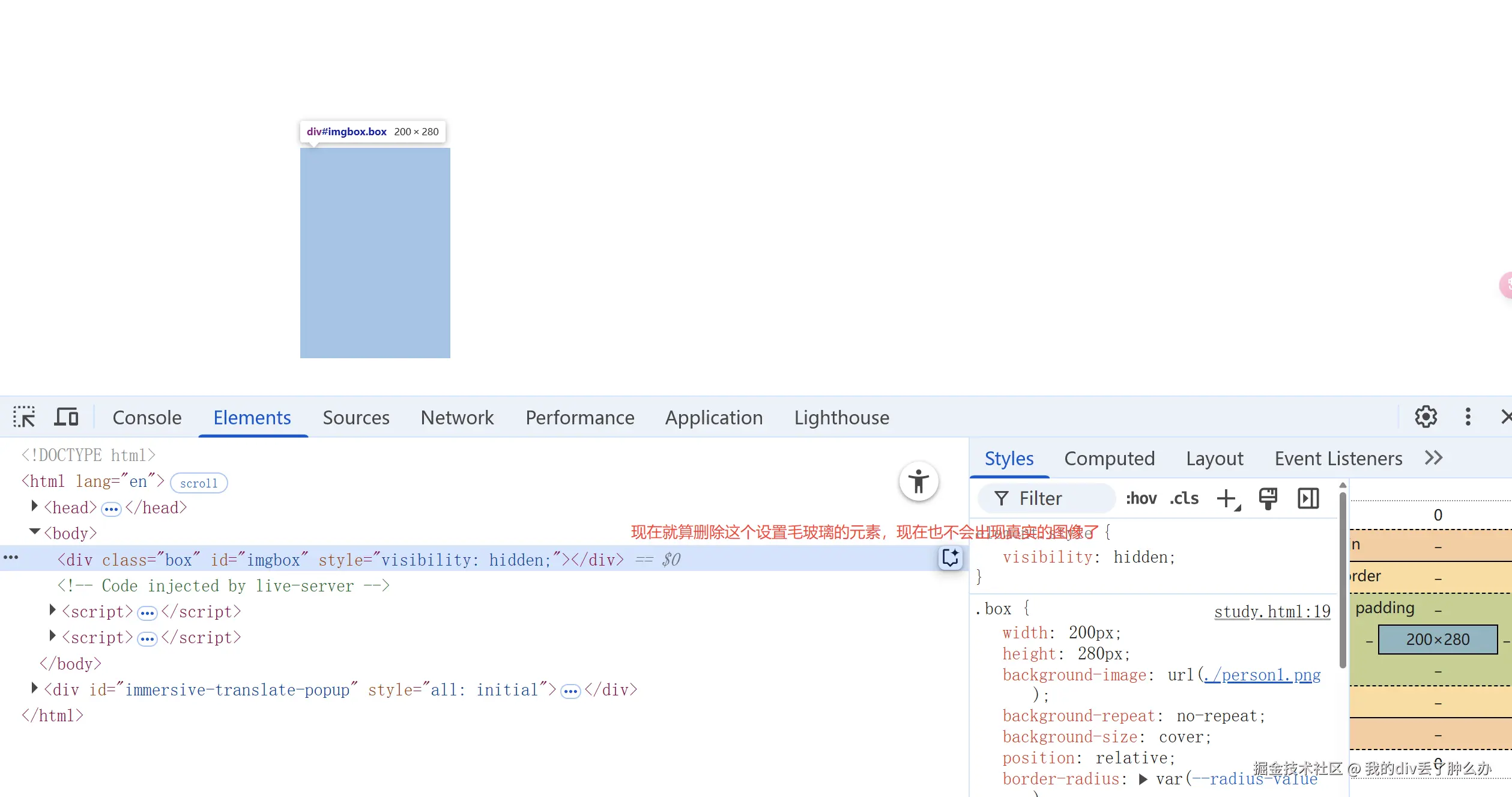 我们直接将这个 id = imgbox 隐藏起来。