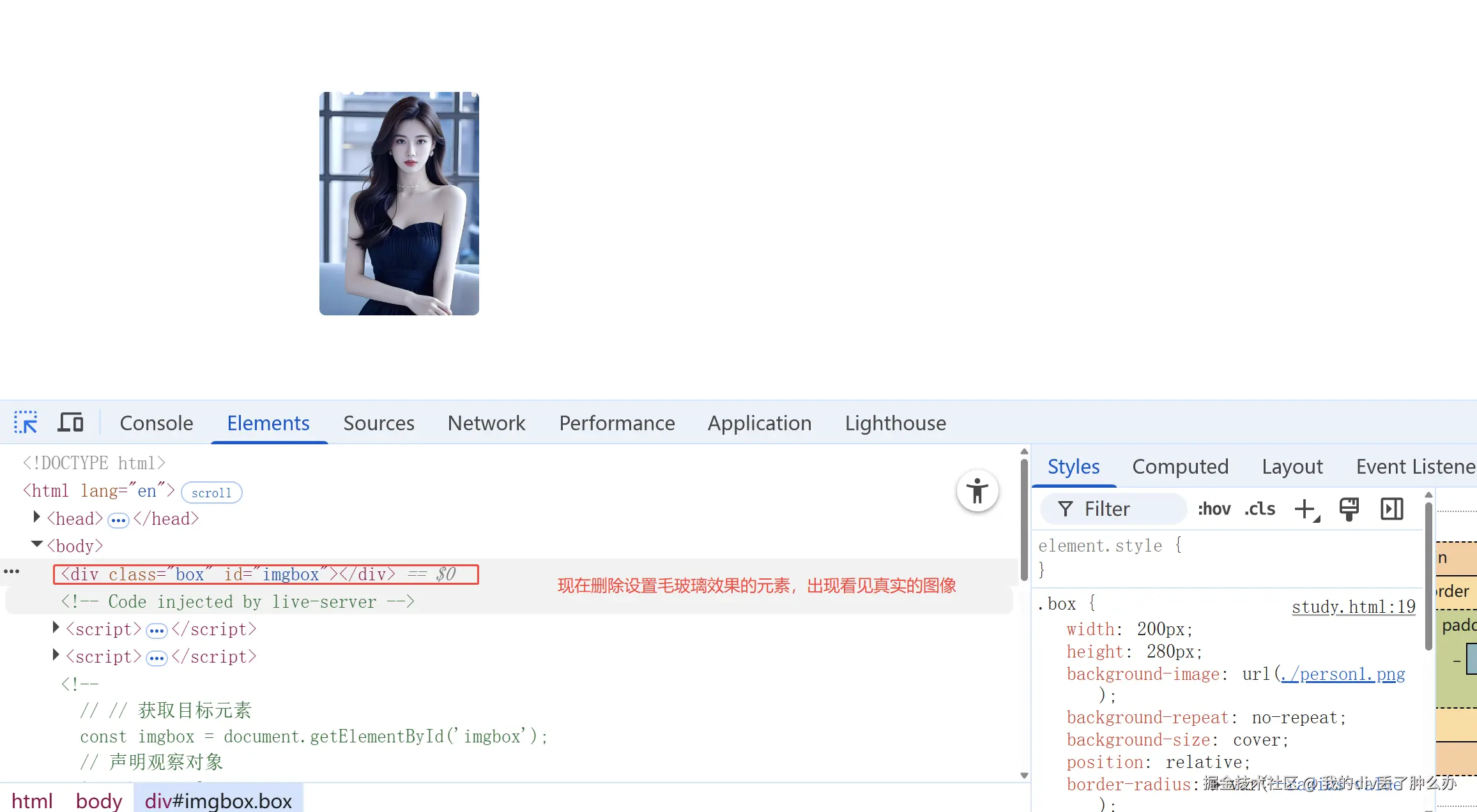 我们的背景图是插入在 <div class="box" id="imgbox"> 这个元素上的