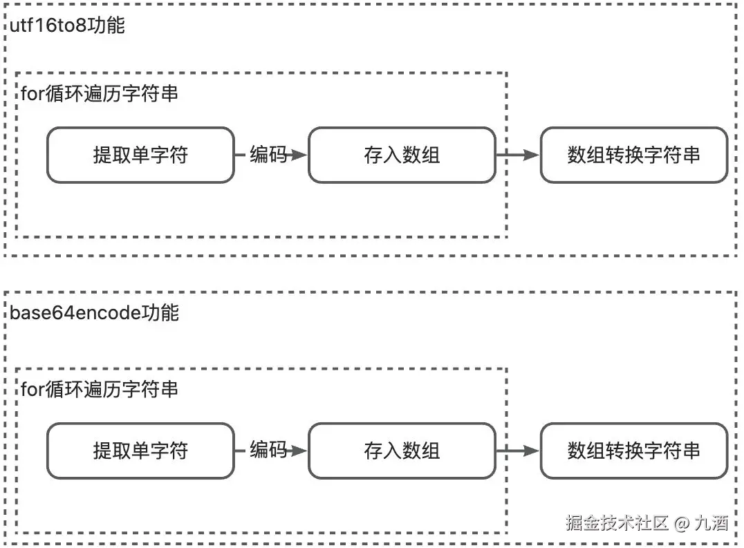 客户现有的编码代码(两种类型编码:base64encode(utf16to8(p)) )中使用了 += 的方式对编码后的字符进行了字符的拼接,导致当对500w字符进行编码时,总耗时有500ms左右。将拼接方式换成Array.push()方式后,总编码耗时平均在200ms 左右。