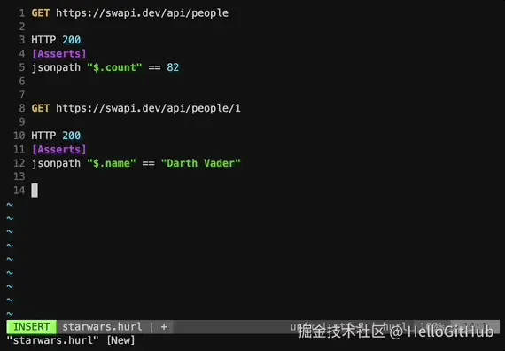26、hurl:纯文本定义 HTTP 请求的工具。这是一个 Rust 写的命令行工具,可以用纯文本定义 HTTP 请求。它开箱即用、易于集成,可以轻松发起 HTTP 请求,支持多个链接、GraphQL、结果校验等功能。