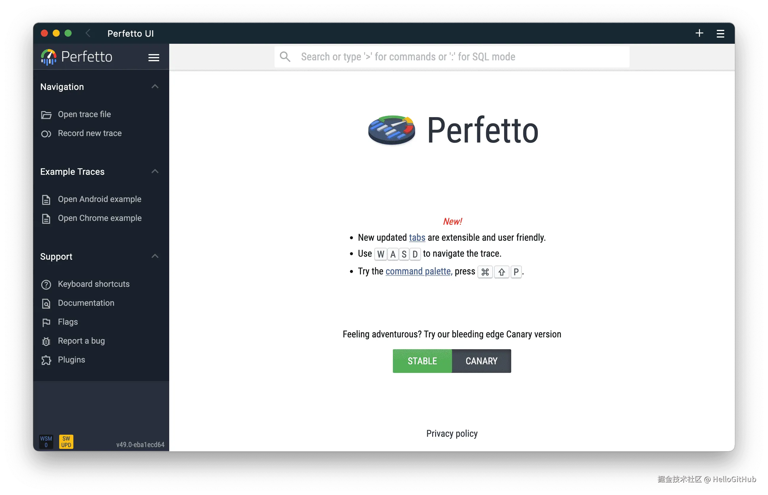 6、perfetto:Google 开源的性能分析工具。该项目是谷歌开源的面向生产环境的性能分析与追踪工具,适用于 Android、Linux 和 Chrome。它提供可视化追踪数据的 Web 界面,支持系统与应用级的追踪、Java 堆栈分析、SQL 分析等功能。