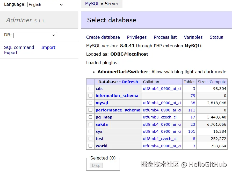 20、adminer:单文件即用的数据库管理工具。这是一款用 PHP 编写的数据库管理工具,仅需单一文件即可部署。它拥有极低的上手门槛和丰富的插件,支持 MySQL、MariaDB、PostgreSQL、SQLite、MS SQL 等主流数据库,并可通过插件扩展支持 Elasticsearch、MongoDB、ClickHouse 等,适用于日常数据库管理和开发等场景。