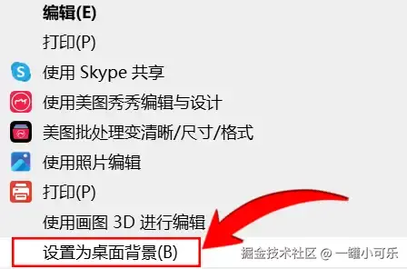 步骤2:在图片文件上点击鼠标右键,在弹出的菜单中选择 “设置为桌面背景” 。此时,系统会自动将这张图片设置为桌面壁纸。