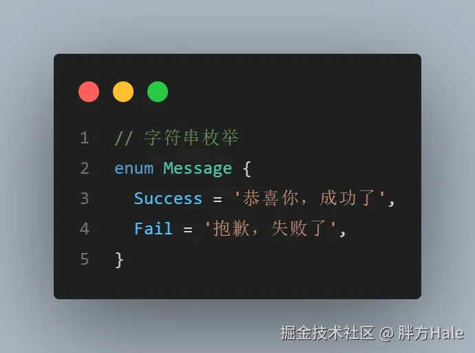 字符串枚举的概念很容易理解,在一个字符串枚举中,每个成员都必须用字符串字面量,或另外一个字符串枚举成员初始化。