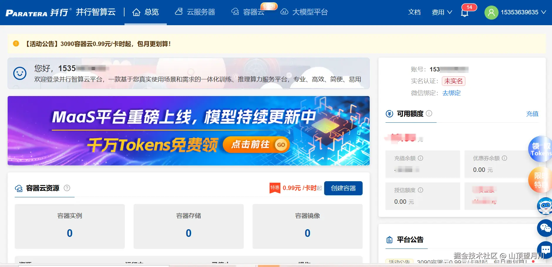 - 使用并行智算云提供的监控工具(如 Prometheus 或 Grafana)监控 GPU 和 CPU 使用情况。