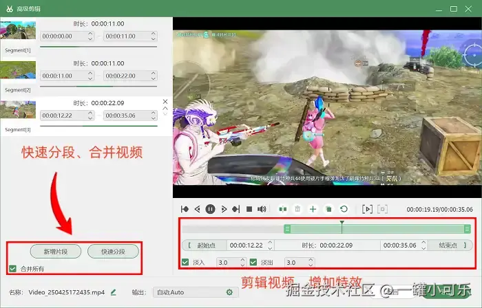 步骤3:录制完成后,还可以选择软件内置的 “高级剪辑” 工具对视频进行后期编辑操作,如快速分段视频、剪辑需要的视频片段等。
