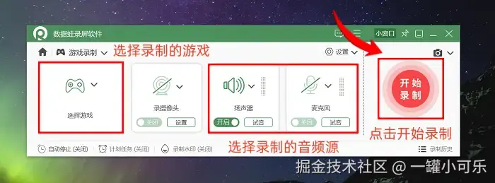 电脑打游戏录屏用什么软件?数据 蛙录屏软件是一款功能全面、操作简便的录屏工具。它支持不限制时长的录制,而且不会预设水印,这点真的很良心!它支持多种录制模式,如屏幕录制、游戏录制、音频录制等,几乎涵盖了所有可能的录制场景。