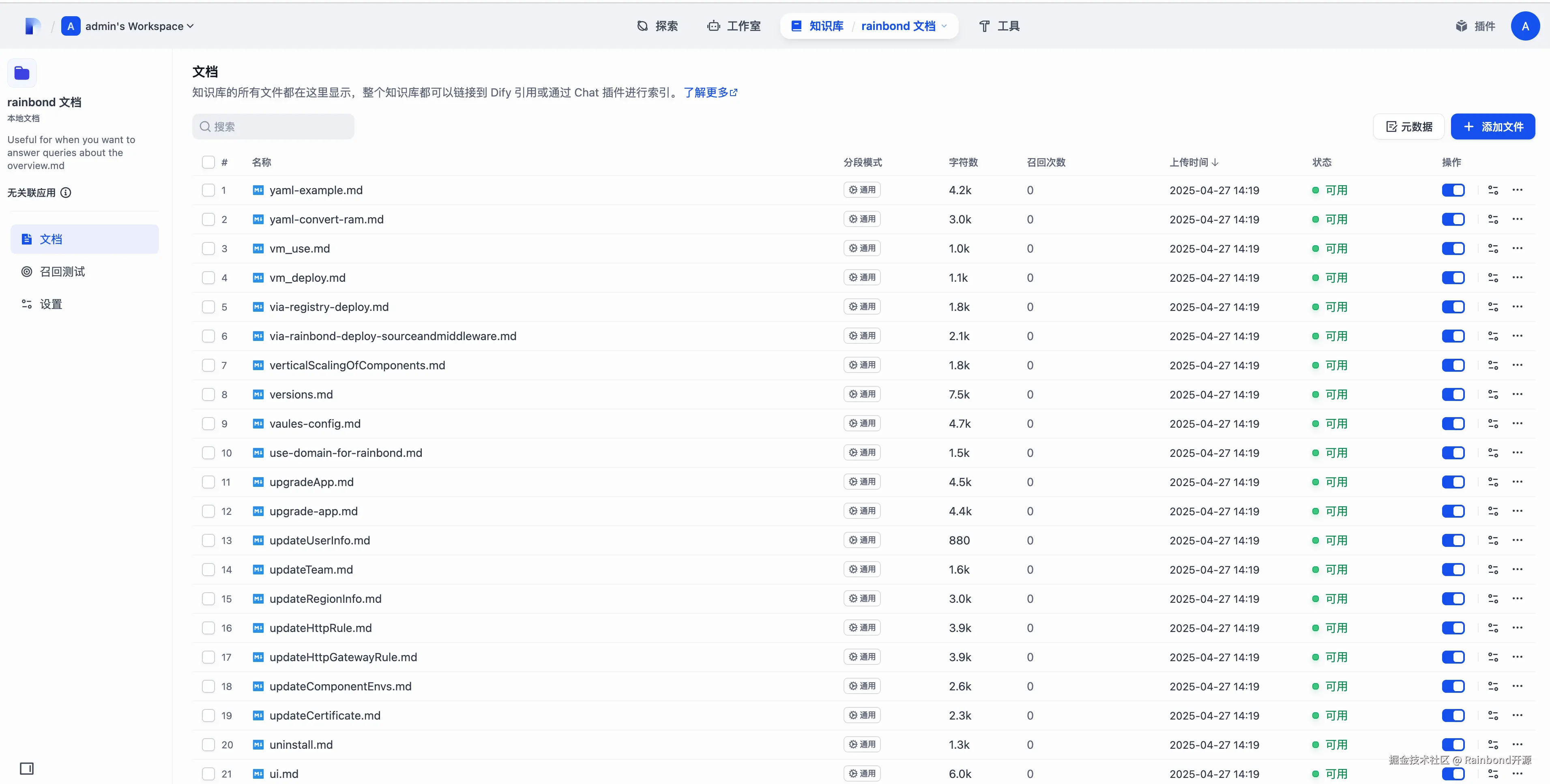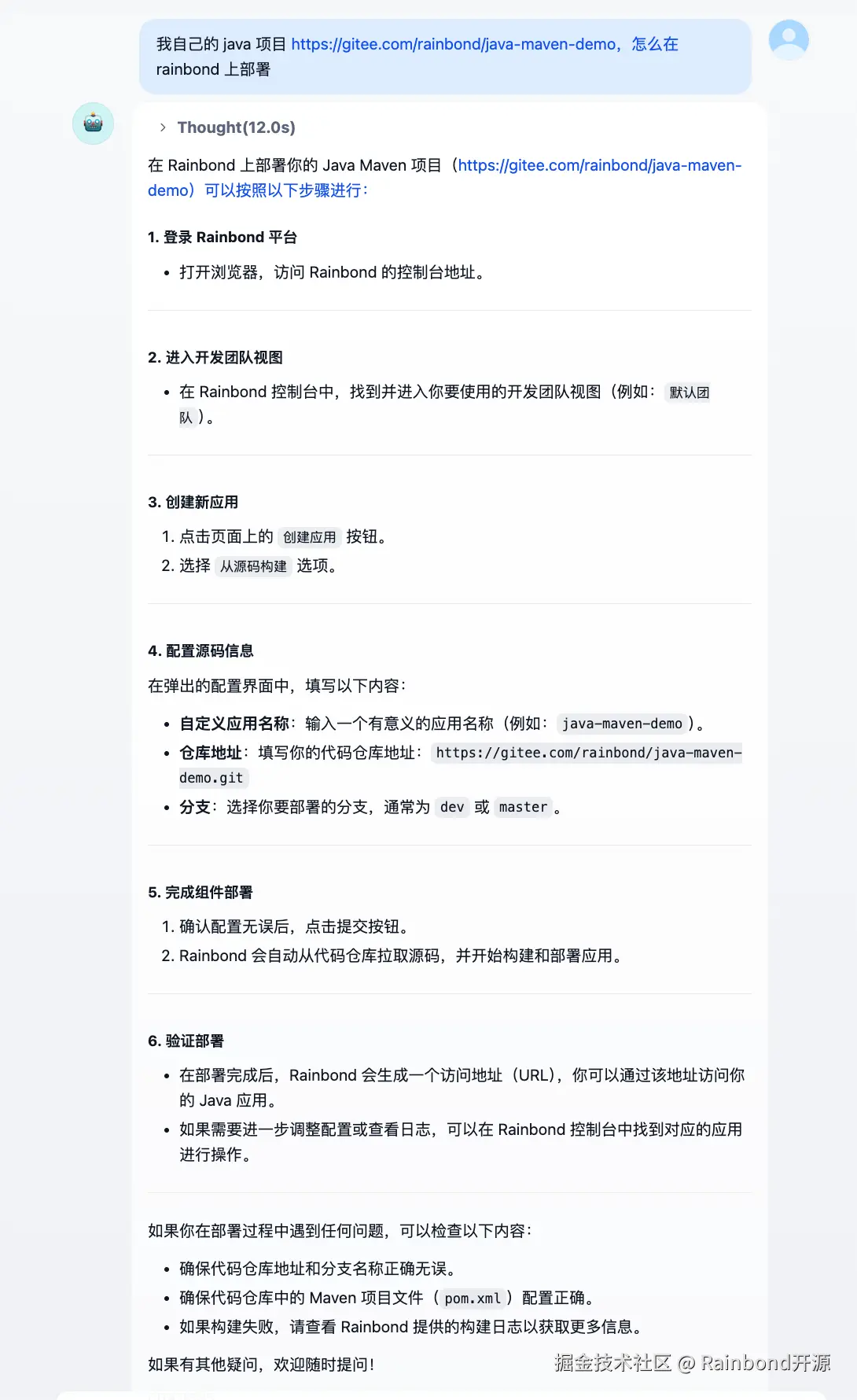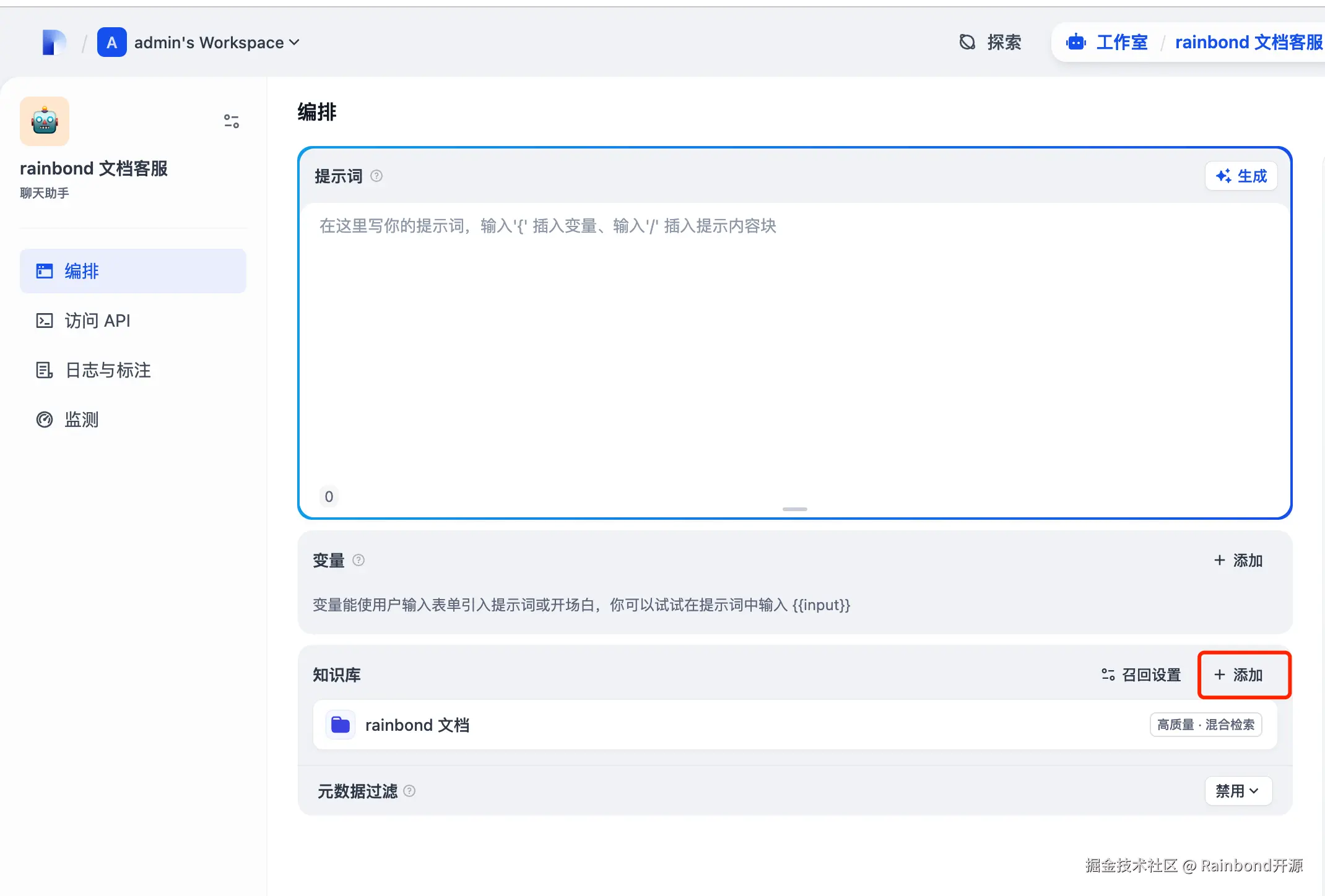 如果你在搭建过程中遇到资源调整、模型适配等细节问题,别忘了回到文中看看踩坑提示;如果想进一步优化问答效果,Dify 的召回参数配置、Rainbond 的资源调度策略都有很大探索空间。现在,你可以试着让这个专属的 AI 助手回答文档问题,也可以把它分享给团队小伙伴,让知识真正流动起来。