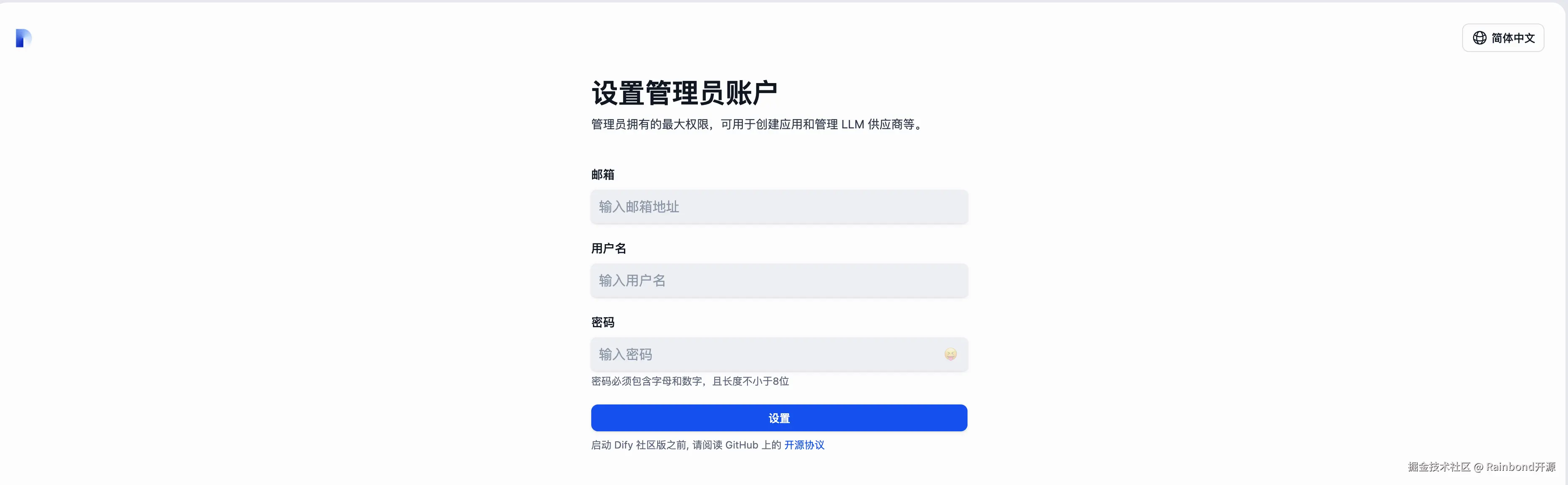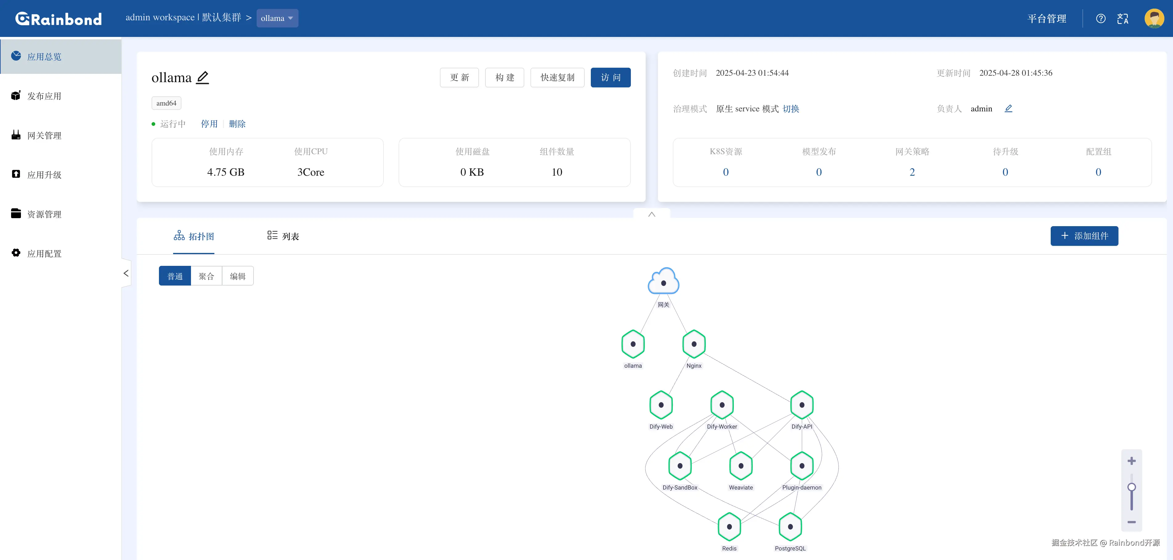 如果需要将 Dify 部署在自有服务器或数据中心(满足数据本地化、合规性要求),Rainbond 提供极简私有化部署方案,无需手动编写 K8s 配置,10 分钟内即可完成生产级环境搭建: