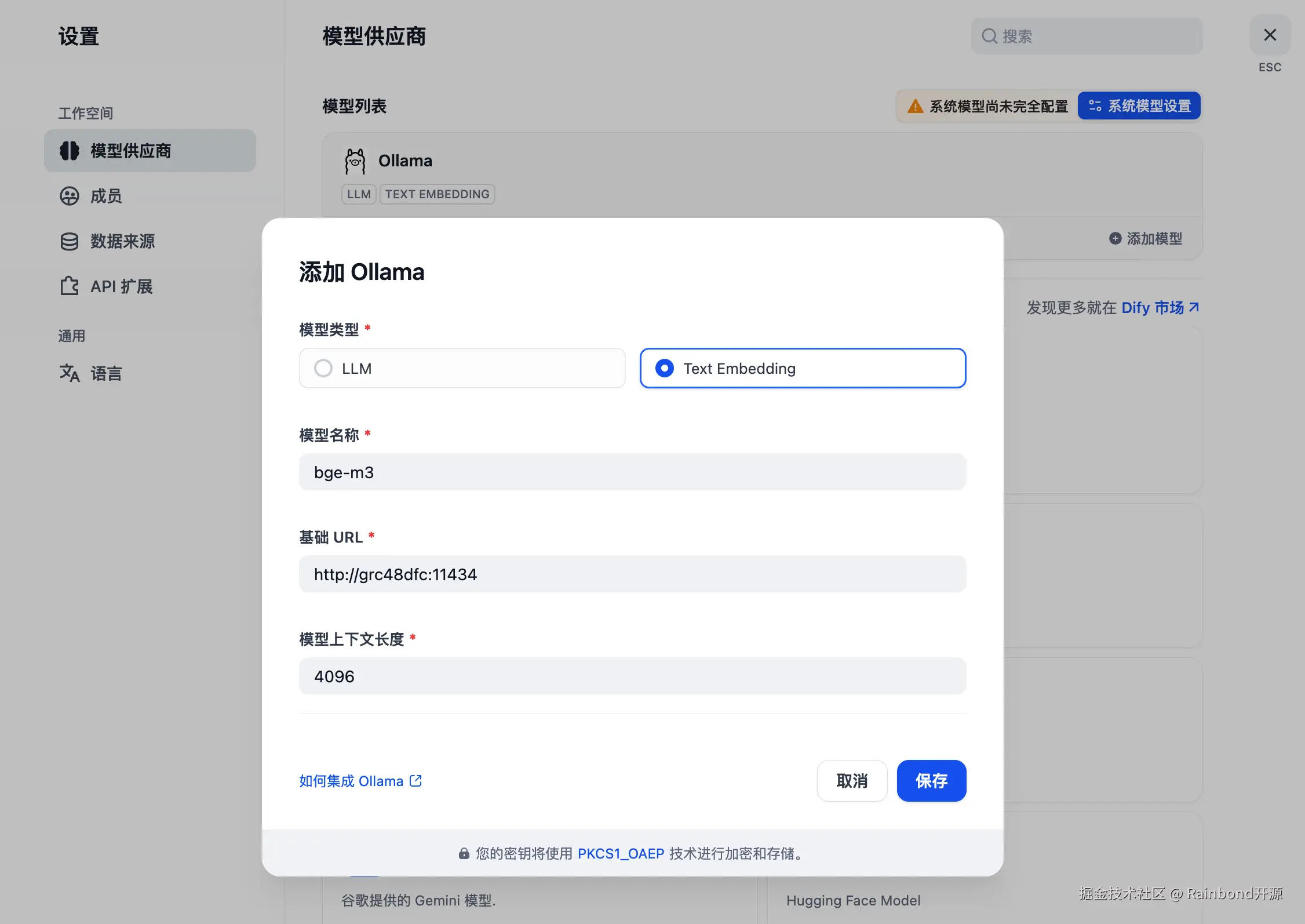在 Dify 中配置本地 Embedding 模型和 LLM 模型