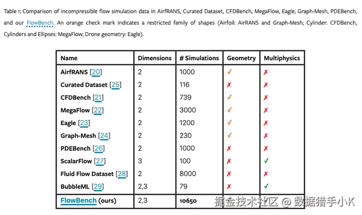 2、包含多物理场模拟:FlowBench不仅包括了流动模拟,还包括了热流耦合模拟,填补了多物理场数据集的空白。