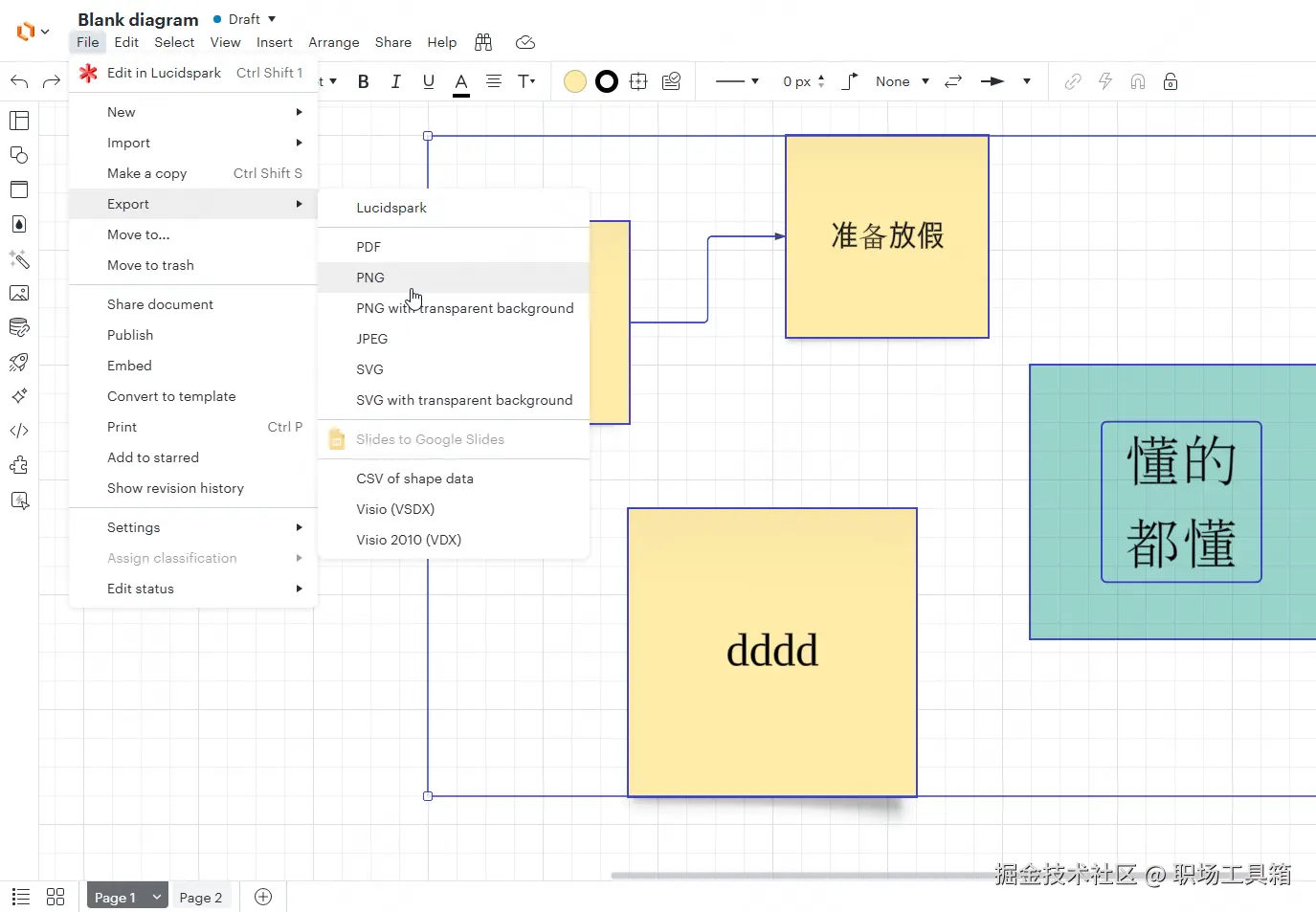 使用Lucidchart在线制作图表,完成编辑后,怎么导出图片呢?