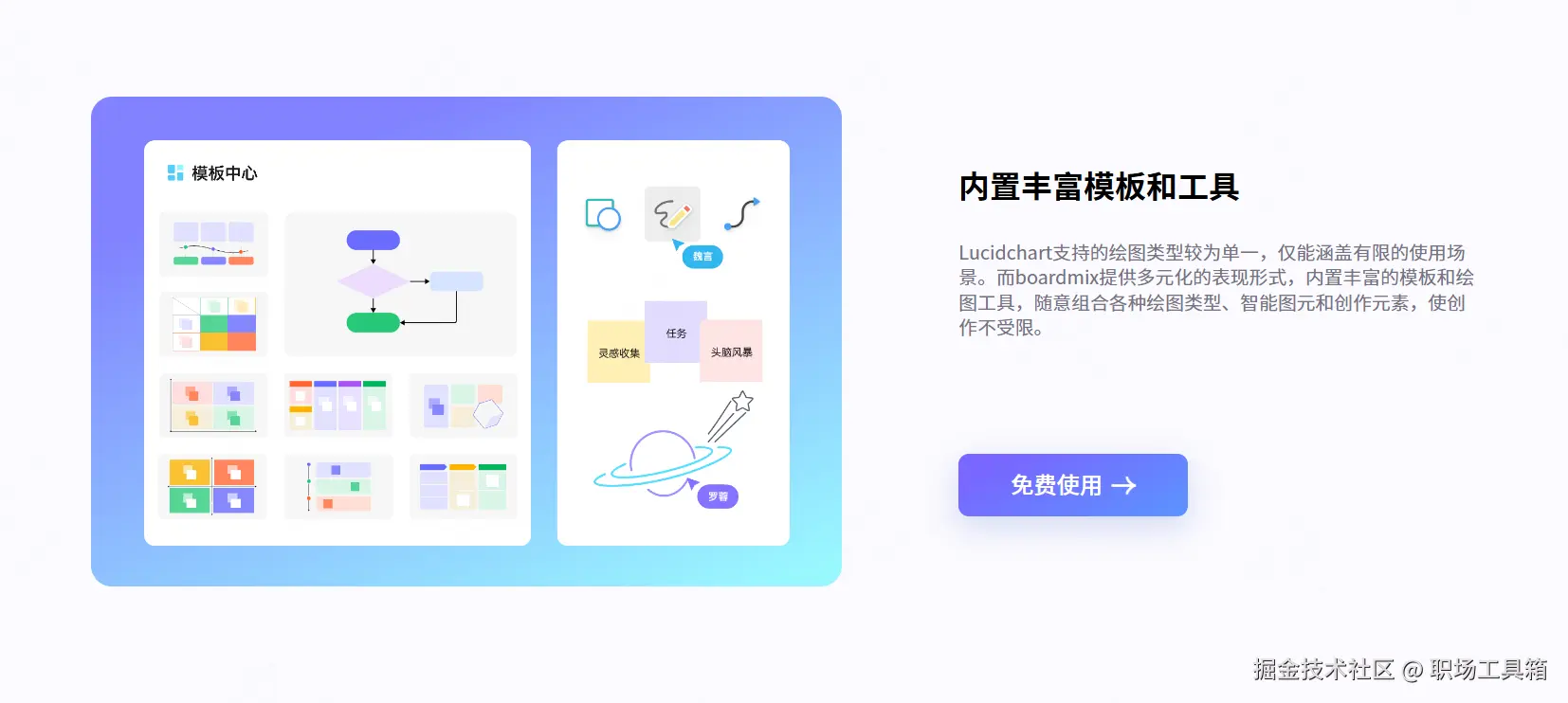 如果你有生成更多图表类型的需求,譬如商业模式画布、用户旅程图、精益画布、 SWOT分析 、 胜任力模型 、六顶思考帽等,这些图表类型超出了Lucidchart自带的AI功能。