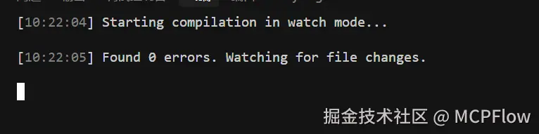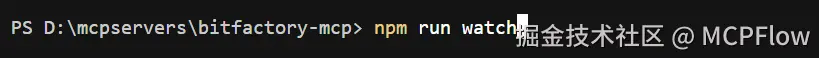在 MCP 服务器项目目录下,运行 npm run watch 启动一个监听服务,监听 src/index.ts 源码文件的内容变动,并实时编译成 build/index.js 可执行文件。
