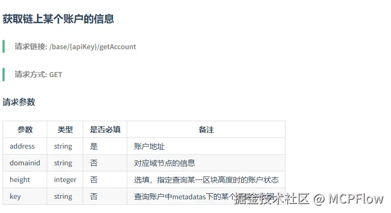 getAccount 工具的参数依据星火链API文档来定义,其中apikey是必填项,api-secret根据用户定义来决定是否要填写,勾选就必须传,否则就不需要。