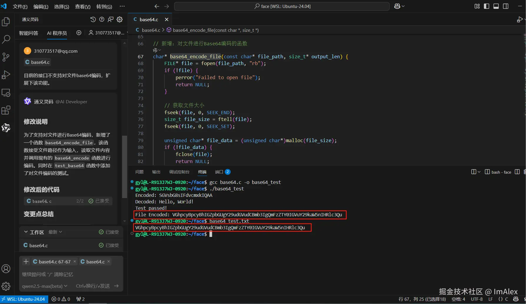 再次编译运行验证,新增API和linux base64命令对同一个文件的base64编码结果一致。