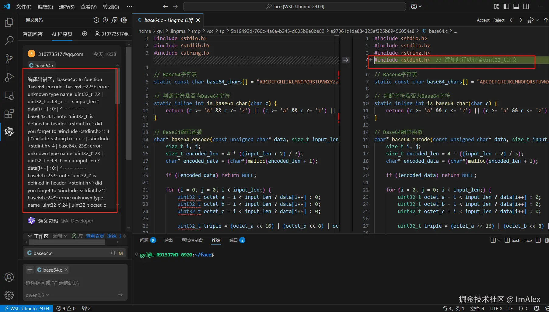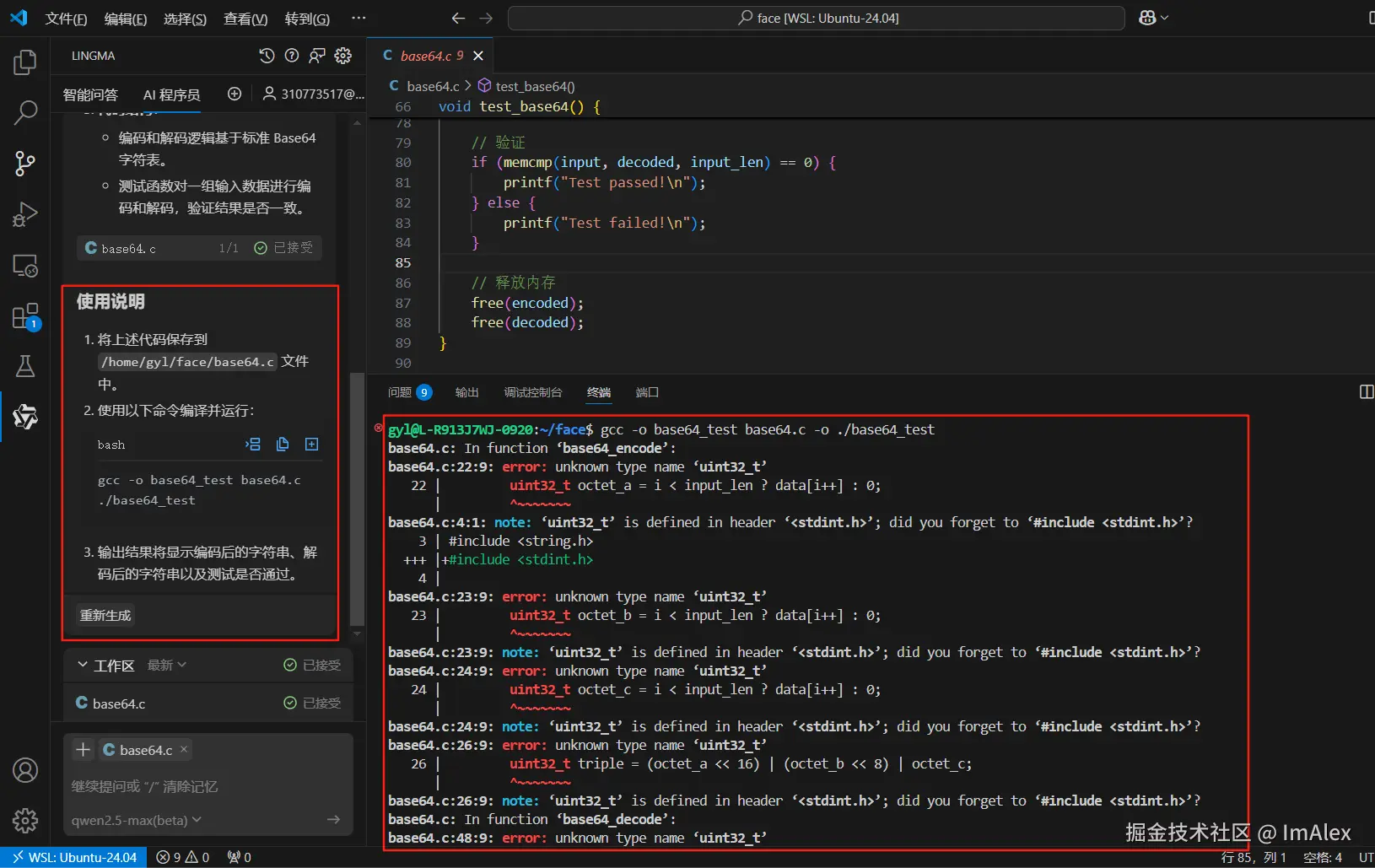 根据AI程序员给出的使用说明,尝试编译运行测试,发现有错误。