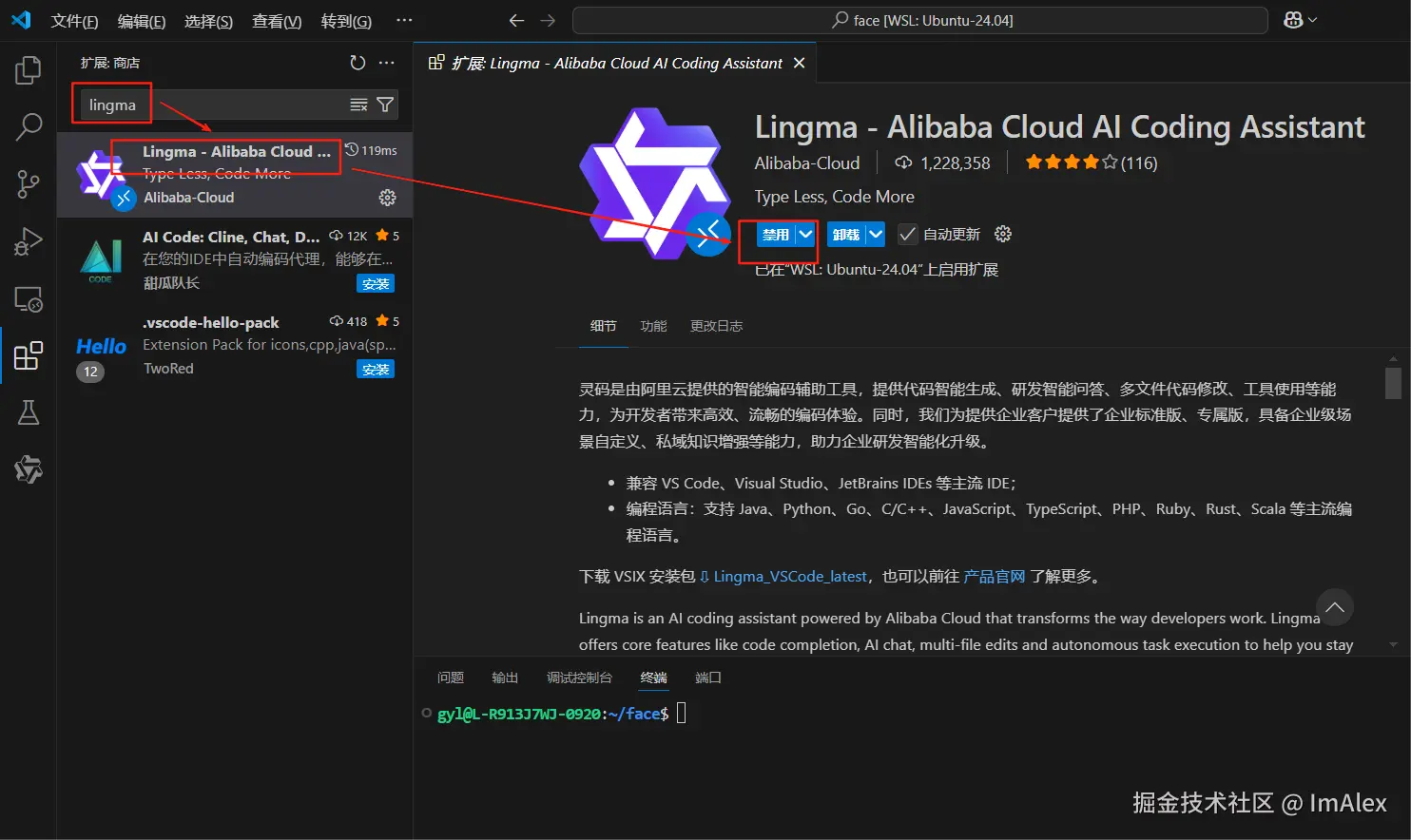 以vscode为例,直接在应用商店搜索**lingma**,找到插件进行安装即可。