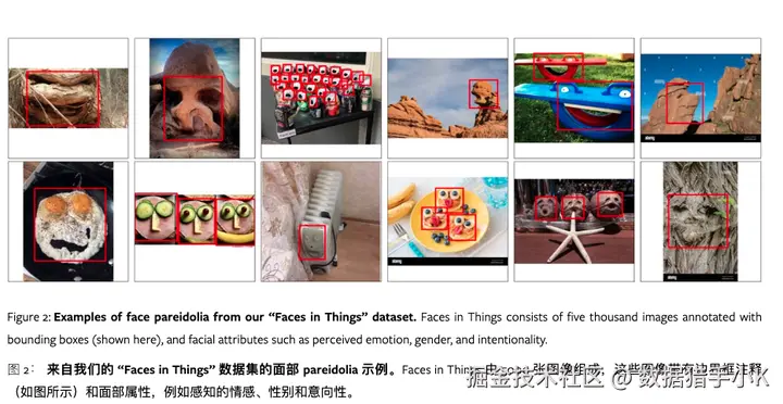 Faces in Things数据集:一个包含五千张网络图片的面部错觉图像数据集,利用这个数据集,研究人员检验了最先进的人脸检测器是否也会展现出面部错觉,并发现了一个显著的行为差距。