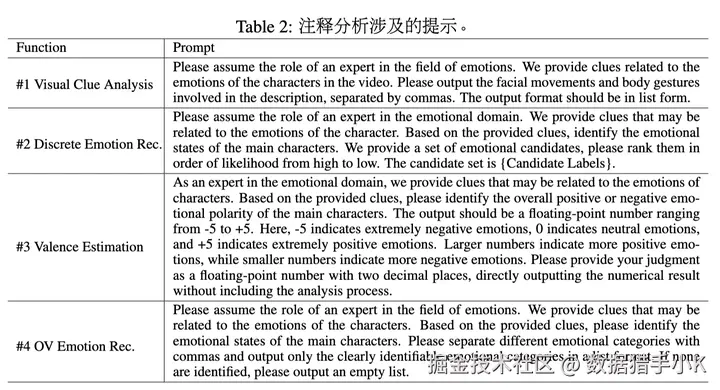 - 线索标注:六个标注者随机分配,每个视频剪辑由三个标注者标注情绪线索。