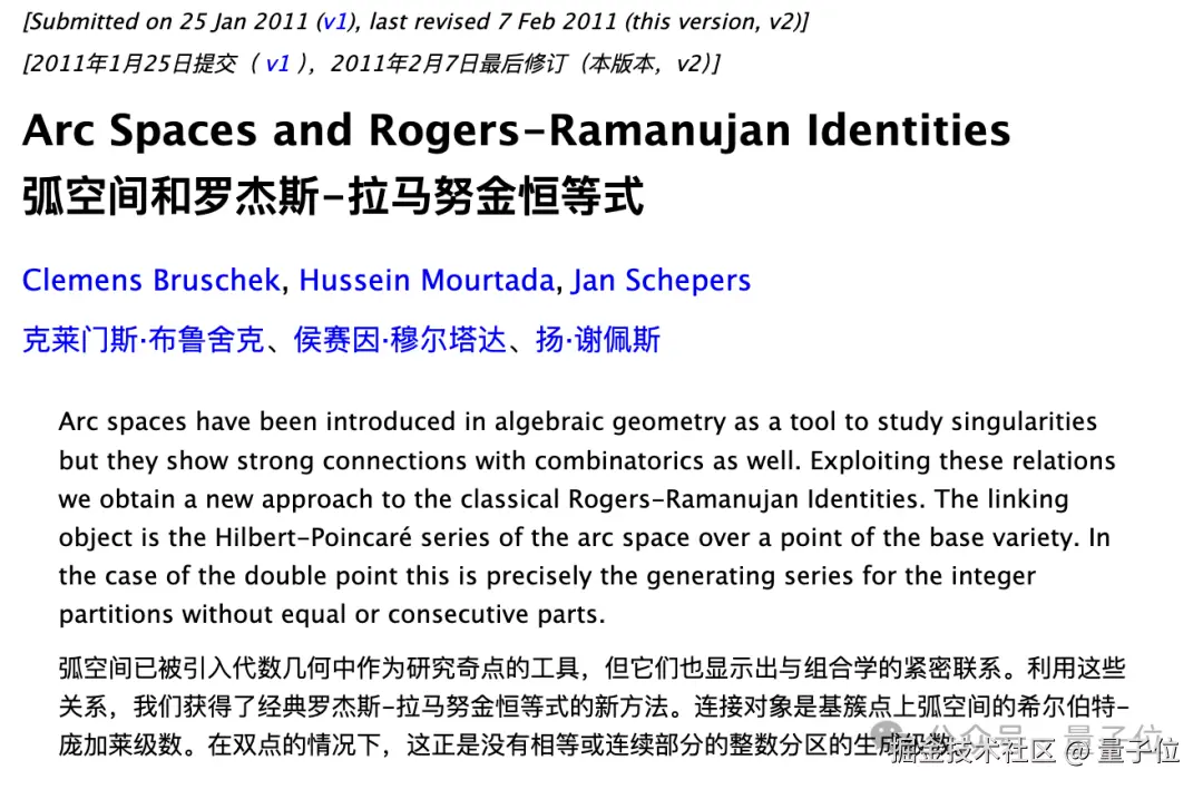 简单来说,莫尔塔达在研究名为 “胖点” 的简单奇点的弧空间时,发现弧空间的结构可以用罗杰斯 - 拉马努金恒等式来描述。