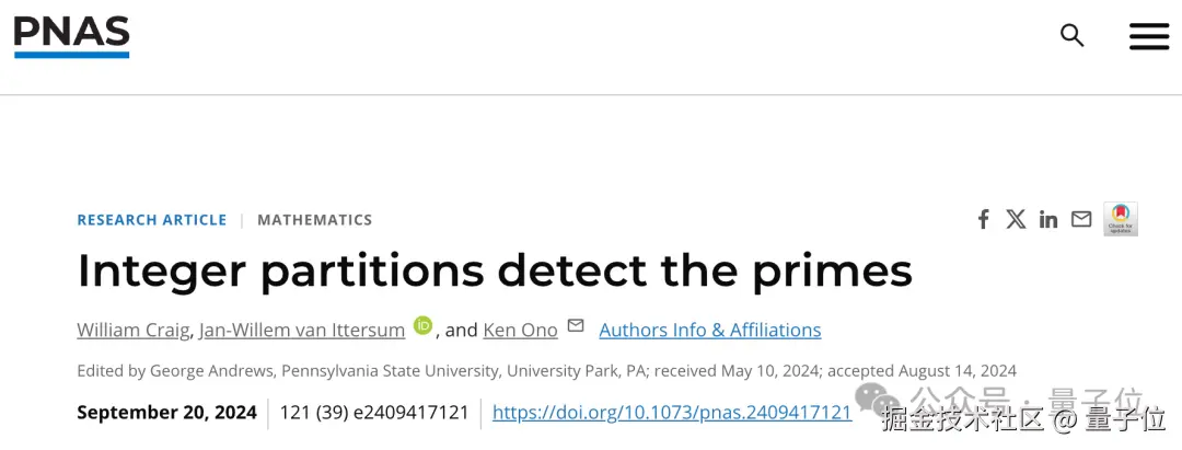 就在 2024 年 9 月,弗吉尼亚大学的数学家小野肯(Ken Ono)和他的合作者们,还在 PNAS(美国国家科学院院刊)上发表了一篇关于罗杰斯 - 拉马努金恒等式的应用论文,将其用于检测质数。