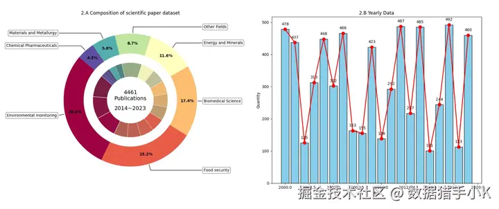 利用Web of Science等数据哭进行文献检索,通过关键词筛选和人工去重,最终获得4461篇相关论文。不仅对这些论文进行详细的分类和标注,包括研究对象,使用的光谱技术、化学计量参数等。而且还从所有文献中提取超过20000条指令微调数据(IFT),这些数据包含了相关的知识和对应的文献来源。