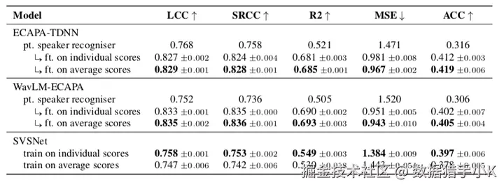 实验采用了三种模型架构:ECAPA-TDNN、WavLM-ECAPA和SVSNet,用于说话者相似度预测实验。