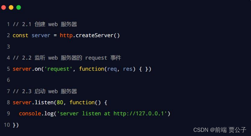 调用http.createServer()方法,即可快速创建一个 web 服务器实例