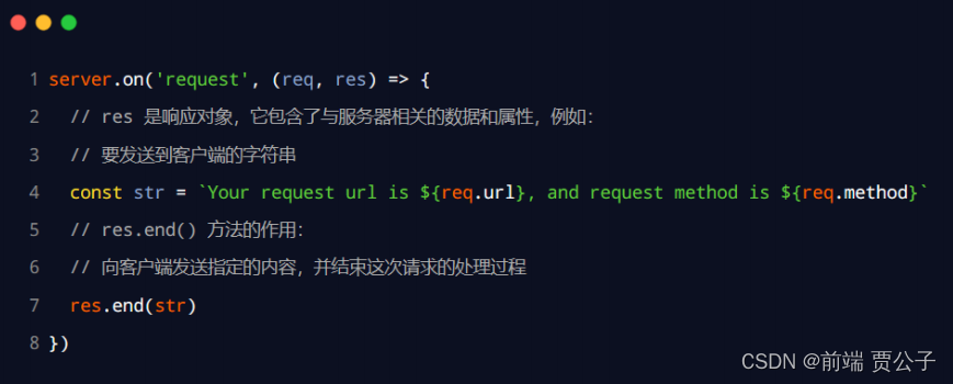 4. res 响应对象 在服务器的 request 事件处理函数中,如果想访问与服务器相关的 数据 或 属性 ,可以使用如下的方式</span>