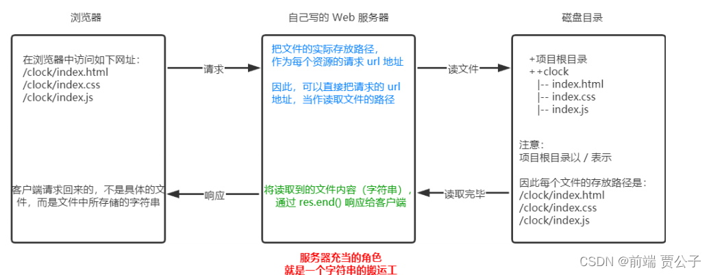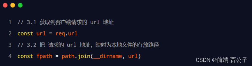 - ③ 为服务器实例绑定 request 事件,监听客户端的请求