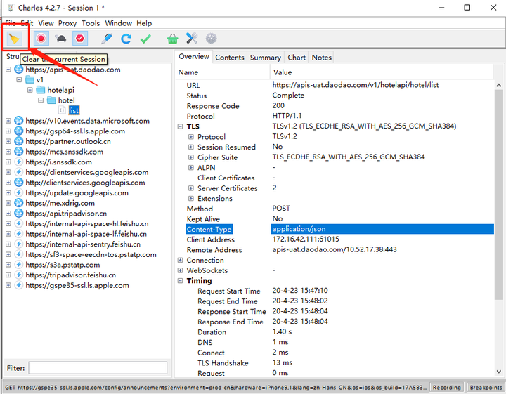 1、 首先清空Charles界面上的其他记录;