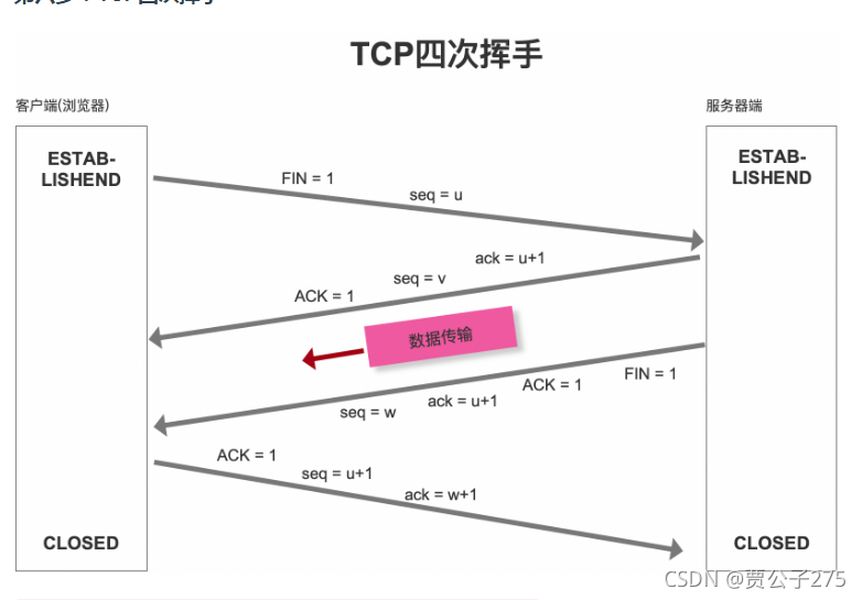 - 但关闭连接时,当服务器端收到FIN报文时,很可能并不会立即关闭链接,所以只能先回复一个ACK报文,告诉客户端:”你发的FIN报文我收到了”,只有等到服务器端所有的报文都发送完了,我才能发送FIN报文,因此不能一起发送,故需要四步握手。
