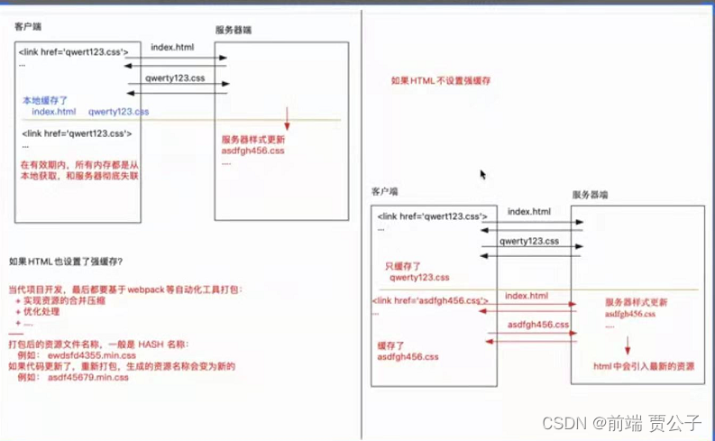 - 所以真实项目中,html页面是“绝对不能设置强缓存的”,一但html都缓存了,则和服务器彻底失联了,服务器不论如何更新,客户端在缓存有效期内都无法获取最新的!!