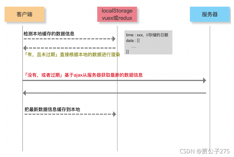 第一次向服务器发送请求(本地没缓存),服务器把信息返回给客户端「同时在响应头中设置 Expires或Cache-Control,用来规定是否设置强缓存以及缓存的周期」; 客户端获取信息后,渲染的同时,根据缓存的规则,把信息缓存在本地;
