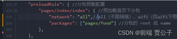2️⃣分包预加载配置:分包创建完成后,为了提高小程序加载分包的速度,可以直接指定预加载配置“preloadRule”: