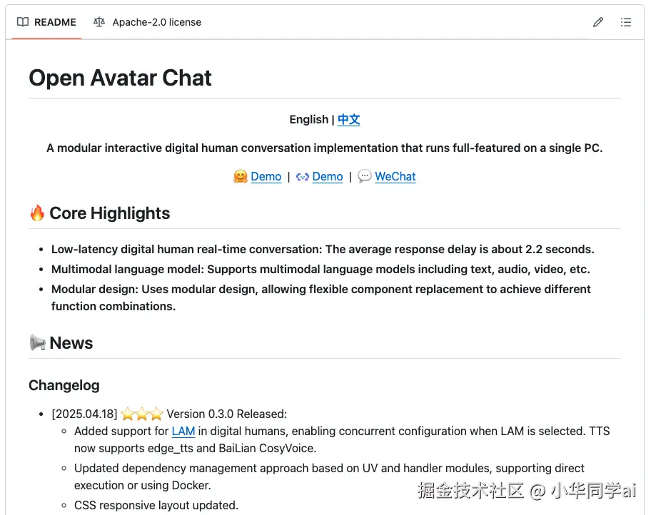 "只需一台普通电脑,就能让数字人像真人一样与你畅聊!" —— OpenAvatarChat项目团队