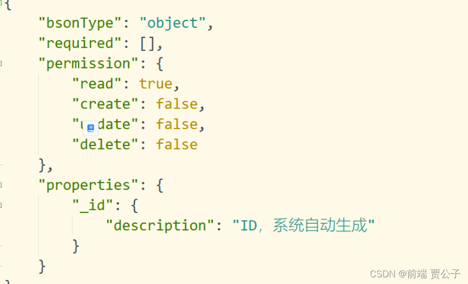 | 基本 | bsonType | any | 字段类型,如json object、字符串、数字、bool值、日期、时间戳,具体见下表bsonType可用类型 | |