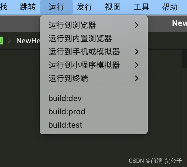 1.需要本地调试时,点击HBuilder X工具栏“运行”,选择自定义的对应的环境;