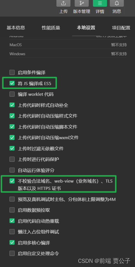 与最终编译结果有关的设置 必须 设置到 project.config.json 中