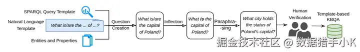 使用自然语言模板和SPARQL查询模板来生成问题,并通过人工验证确保这些问题在语义上是有意义的。