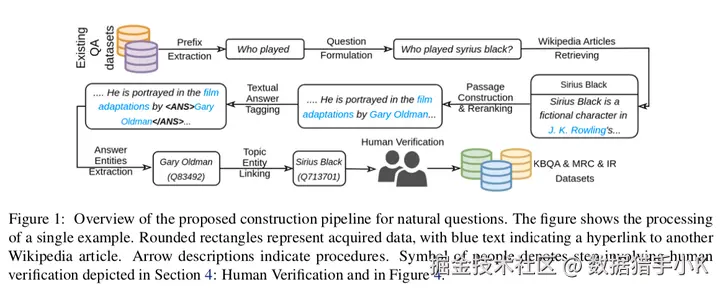 其中关于人工验证:对所有候选问题和答案进行人工验证,确保只有高质量的数据被包括在最终的数据中,用于后续的KBQA、MRC和IR任务。