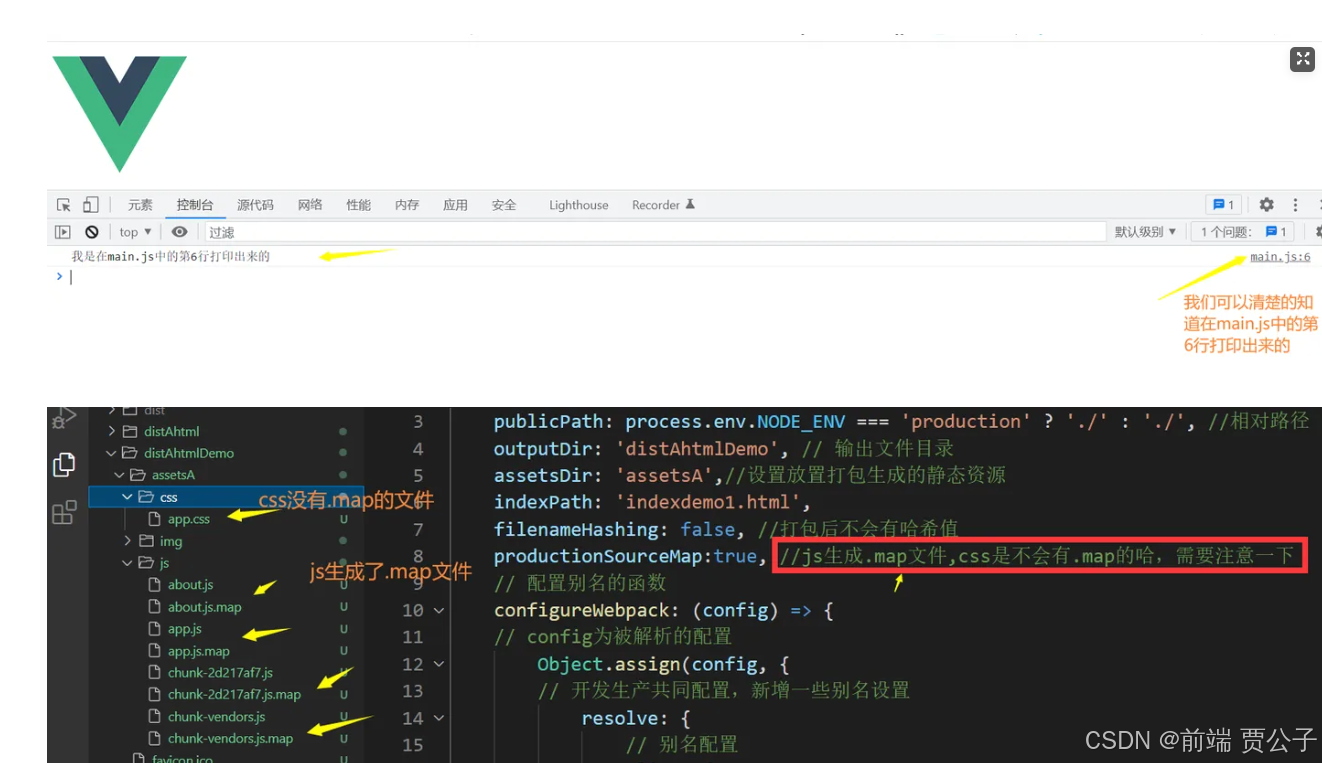 如果你不想生成 source map 文件,可以在 vue.config.js 中禁用它: