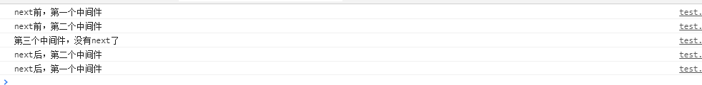 这个时候就会执行第三个中间件 next() 之后的代码,然后是第二个、第一个,从而形成了洋葱模型。