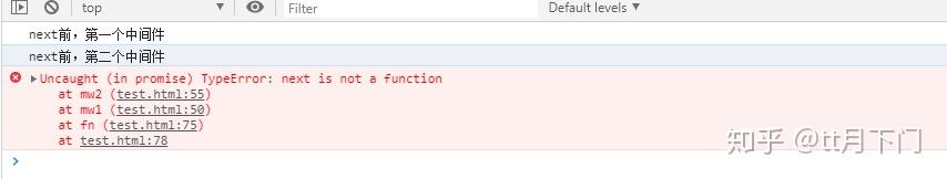 因为执行mw2的时候(也就是mw1里的next),并没有把ctx 和 mw3传给它